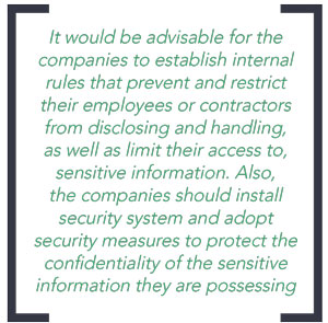 In the age of social media, it would be advisable for the companies to establish internal rules that prevent and restrict their employees or contractors from disclosing and handling, as well as limiting their access to, sensitive information…