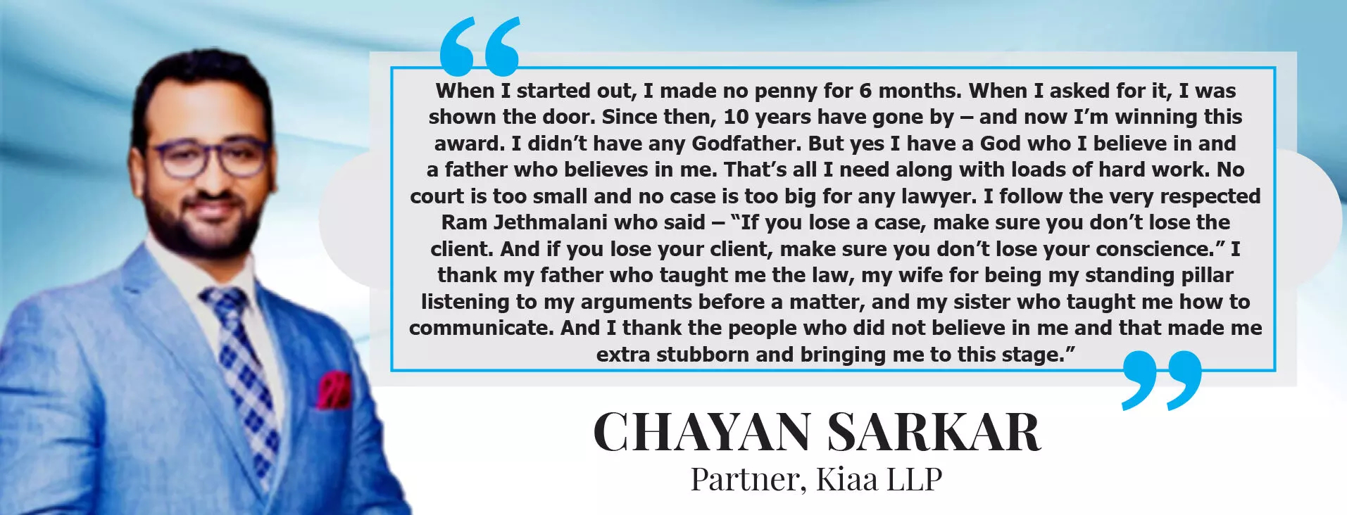Amit Desai, Senior Advocate, Bombay High Court congratulated all the 40 under 40 winners. "They have worked hard to reach this hall of fame. You all carry forward the future of this great profession on your shoulders.You all will be shaping the destiny of this nation as we head towards the 100th year of independence. Some of you will enter the litigation world and, on your mantle, will rest the mantle of protecting the constitutional values. Some of you will continue transaction work and keep the engine of the economy chugging on. All the same, the digital age is upon us. Maintaining privacy will become imp to protect our Fundamental Rights. He concluded by recommending, "Facts are 3/4th of law, and maintaining the Rule of law is vital to our life and social order. And it rests on facts. As you march on, do not forget that."