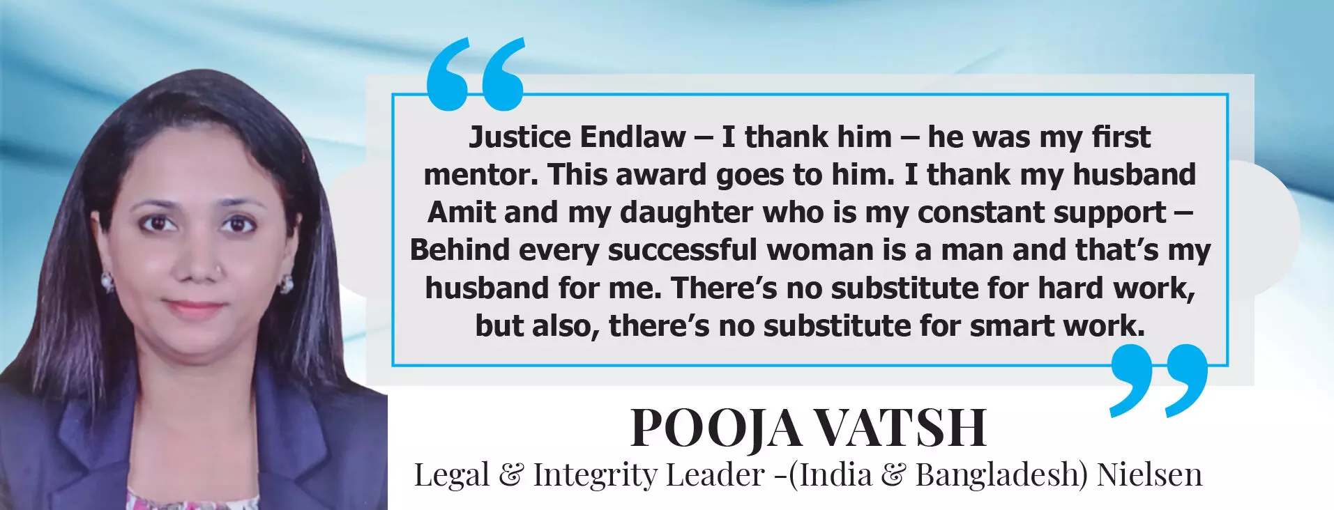 Pooja's leadership and ability to carry the team with her persistence and calm nature during the most stressful times during the entire transaction has been recognized at global platforms within the Nielsen system. During her stint in Nielsen. She played a pivotal role in demerging of Nielsen business in Sri Lanka.