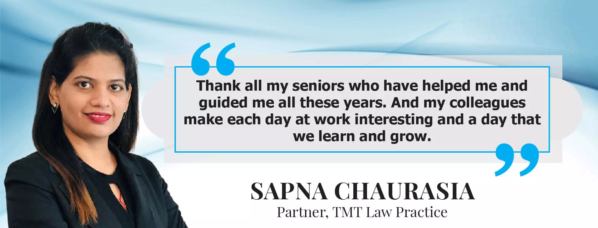 Sapna Chaurasia is a Partner at TMT Law Practice and leads the Mumbai operations of the firm. She has more than 15 years' experience working with law firms and in-house. Her primary areas of expertise are Intellectual Property, Dispute Resolution, Media and Entertainment, employment issues and internal compliances by companies. In her current role, she advises clients on pre-production, production and post-production of cinematographic film, television shows and web-series and provides end-to-end transactional support including legal review of script, due diligence, structuring, drafting and negotiating development agreements, production agreements, artist agreements, amongst others. She advises clients in relation to acquisition and syndication of content for satellite and/or digital exploitation.