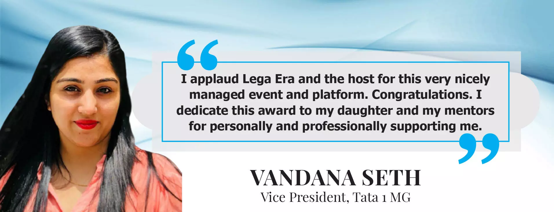 Vandana Seth, Vice President- TATA 1MG.She is currently heading the complete legal, secretarial and compliance vertical of TATA 1MG Group. In her role, she end to end manage the entire legal, regulatory, compliance, secretarial, fund raise, IPR and certain operational aspects. Prior to joining 1MG, she was part of Deloitte (M & A team) and Themis group (VC and PE investments). She has comprehensive experience of all fields across.