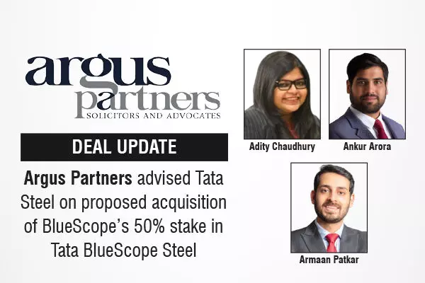 The leading Indian law firm, Argus Partners advised Tata Steel Limited on its proposed acquisition of BlueScope’s 50% stake in the joint venture Tata BlueScope Steel. The acquisition forms part of Tata Steel’s broader strategy to focus on downstream business in the flat products segment.