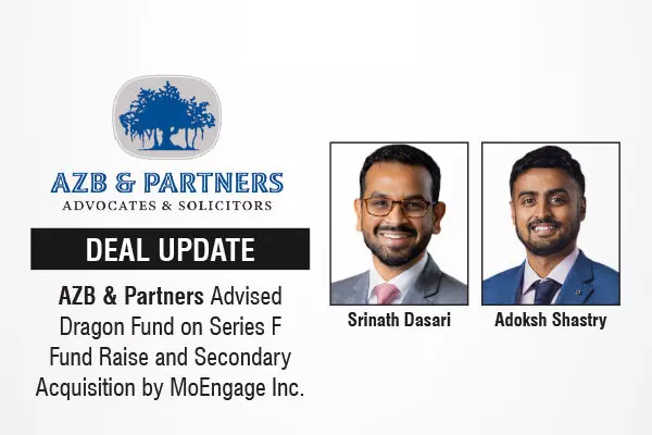 The leading law firm in India, AZB & Partners, advised Dragon Fund on its participation in the Series F fund raise by SaaS startup MoEngage Inc., India, along with a secondary acquisition of securities from certain exiting investors.