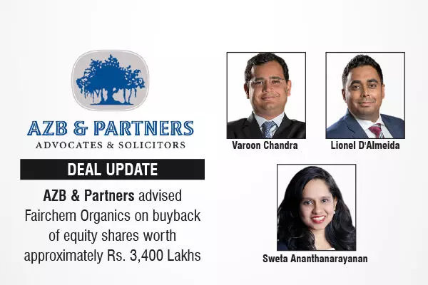 AZB & Partners Advised Fairchem Organics On Buyback Of Equity Shares Worth Approximately Rs. 3,400 Lakhs