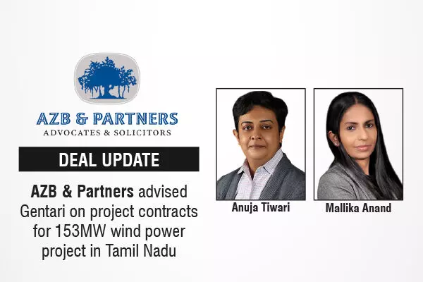 AZB & Partners advised Gentari on project contracts for 153MW wind power project in Tamil Nadu
