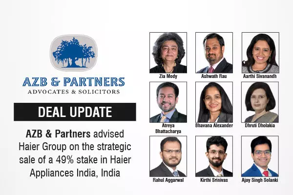 AZB & Partners advised Haier Group on the strategic sale of a 49% stake in Haier Appliances India, India