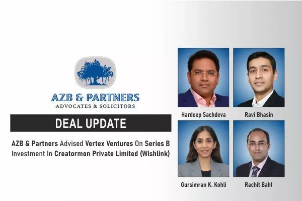 AZB & Partners Advised Vertex Ventures On Series B Investment In Creatormon Private Limited (Wishlink)