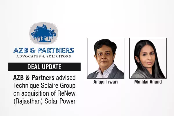 AZB & Partners advised Technique Solaire Group on acquisition of ReNew (Rajasthan) Solar Power