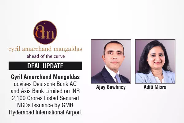 The leading law firm in India, Cyril Amarchand Mangaldas advised Deutsche Bank AG and Axis Bank Limited (as the Arrangers and Initial NCDs Holders) in connection with the issuance by GMR Hyderabad International Airport Limited (Issuer) of listed, rated, secured, redeemable, non-convertible debentures having a nominal value of INR 1,00,000 (Indian Rupees One Lakh) each, aggregating up to INR 2,100,00,00,000 (Indian Rupees Two Thousand and One Hundred Crores only).