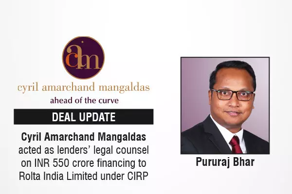 Cyril Amarchand Mangaldas acted as lenders’ legal counsel on INR 550 crore financing to Rolta India Limited under CIRP
