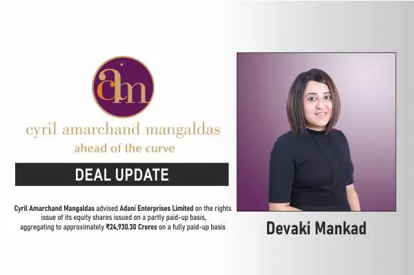 Cyril Amarchand Mangaldas advised Adani Enterprises Limited on the rights issue of its equity shares issued on a partly paid-up basis, aggregating to approximately ₹24,930.30 Crores on a fully paid-up basis