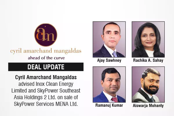 Cyril Amarchand Mangaldas Advised Inox Clean Energy Limited (“Buyer”) And SkyPower Southeast Asia Holdings 2 Ltd. (“Seller”) In Relation To The Sale of 100% Of The Shareholding In SkyPower Services MENA Ltd.