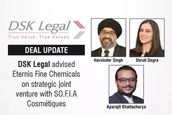 The leading law firm in India, DSK Legal advised Eternis Fine Chemicals Limited in relation to its strategic joint venture with SO.F.I.A Cosmétiques, France, aimed at bridging ingredient innovation with finished product execution, enabling a faster and more integrated path to market in the beauty segment.
