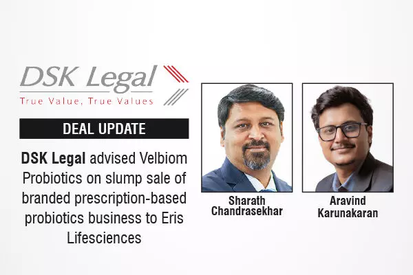 The leading law firm in India, DSK Legal advised and assisted Velbiom Probiotics Private Limited (“Velbiom”) in connection with the transfer of its branded prescription-based probiotics business to Eris Lifesciences Limited (“Eris”) on a slump sale basis, for a deal value of INR 50 crores.