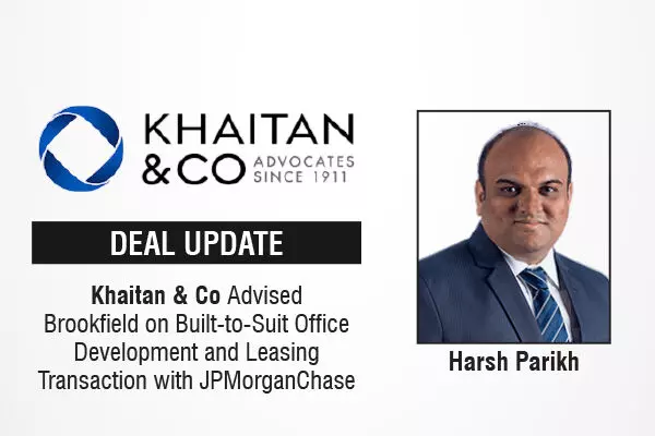 Khaitan & Co Advised Brookfield on Built-to-Suit Office Development and Leasing Transaction with JPMorganChase