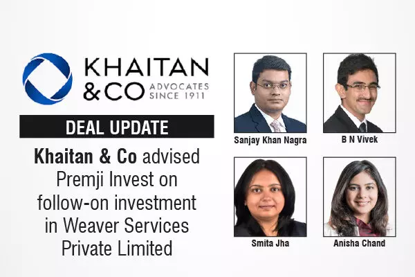 Khaitan & Co Advised Premji Invest On Follow-On Investment In Weaver Services Private Limited