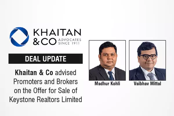 Khaitan & Co Advised Promoters And Brokers On The Offer For Sale Of Keystone Realtors Limited