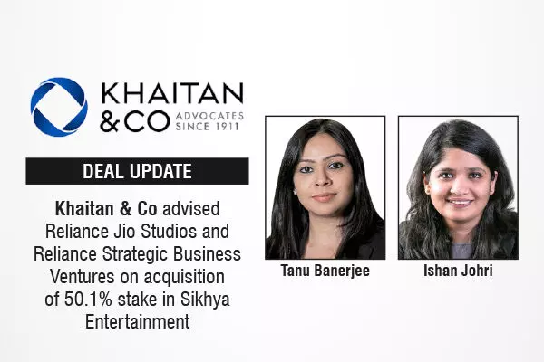 The leading law firm in India, Khaitan & Co advised Reliance Jio Studios and Reliance Strategic Business Ventures Limited on the acquisition of a controlling 50.1% stake in Sikhya Entertainment Private Limited through a mix of primary and secondary acquisition.