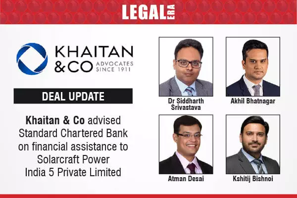 Khaitan & Co advised Standard Chartered Bank on financial assistance to Solarcraft Power India 5 Private Limited