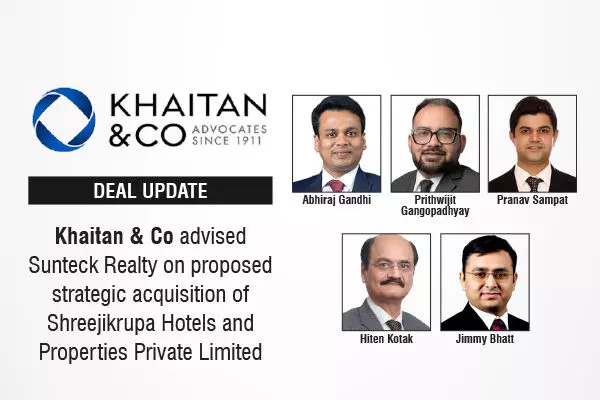 Khaitan & Co advised Sunteck Realty on proposed strategic acquisition of Shreejikrupa Hotels and Properties Private Limited