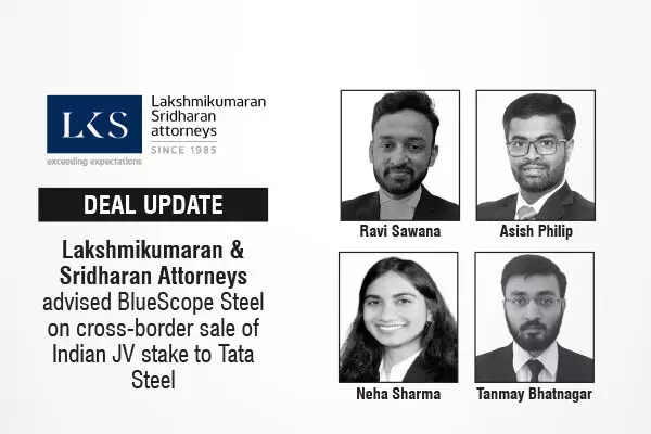 The prominent Indian law firm, Lakshmikumaran & Sridharan Attorneys advised BlueScope Steel Limited, Australia, in connection with the sale of its shareholding in an Indian joint venture to Tata Steel Limited, India, in a transaction valued at approximately INR 1,100 crore (USD 125 million).