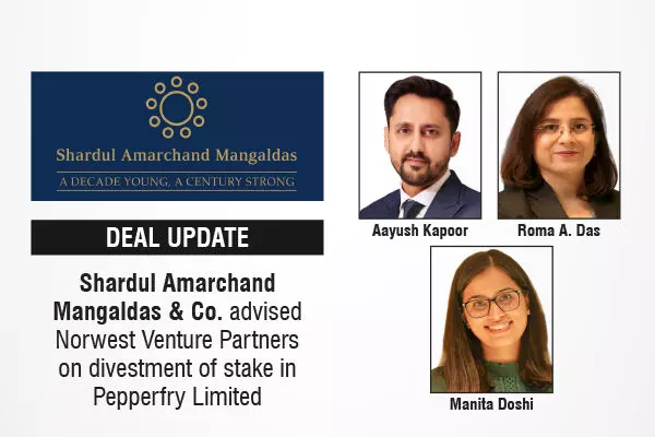 The leading law firm in India, Shardul Amarchand Mangaldas & Co. (SAM) advised Norwest Venture Partners on the divestment of its 100% stake in Pepperfry Limited to TCC Concept Limited, an Indian listed entity.