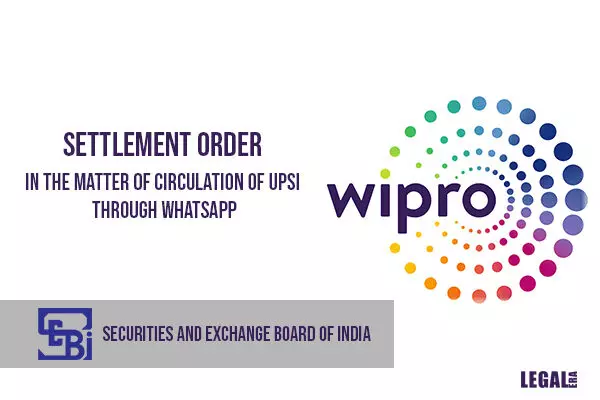 Circulation of UPSI on WhatsApp leads to Settlement Order in Wipro Case