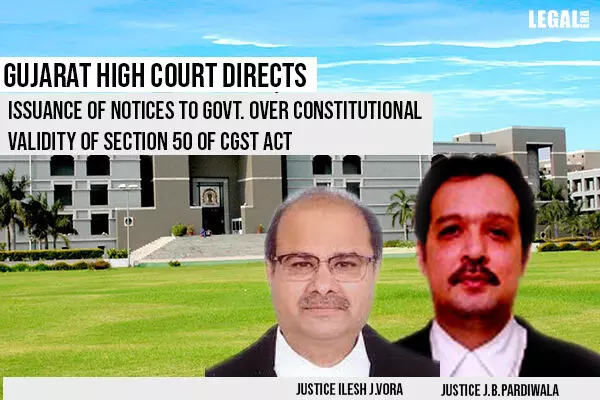 Gujarat High Court Directs Issuance of Notices to Govt. over constitutional validity of CGST Act The Gujarat High Court (HC) division bench comprising of Justices J.B. Pardiwala and Ilesh J. Vora directed the Notice to be issued to the Government (respondent authorities) over the constitutional validity of the proviso to Section 50 of the Central Goods & Services Tax Act, 2017 (CGST...