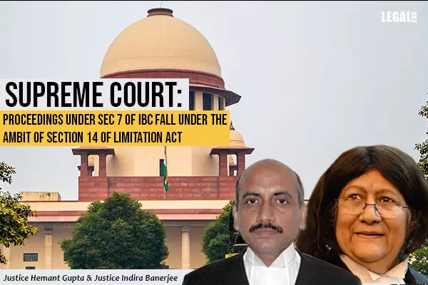 The SC bench comprising of Justices Indira Banerjee and Hemant Gupta held that Section 14 of the Limitation Act applies to an application under Section 7 of the IBC. It added that there is no rule as such that exclusion of time under Section 14 is only available in the case where the proceeding terminates before the wrong Forum.