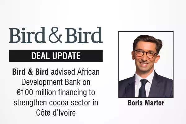 The major international law firm, Bird & Bird advised the African Development Bank on the approval by its Board of Directors of a €100 million financing facility for Sucres et Denrées Côte d'Ivoire, the world's leading cocoa producer.