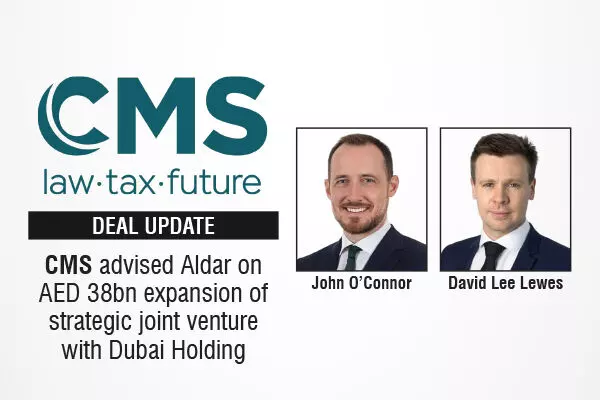 The leading global international law firm, CMS has advised Aldar, the leading Abu Dhabi-based real estate developer, on the expansion of its strategic joint venture with Dubai Holding. The transaction adds two landmark development sites in Dubai with a combined gross development value exceeding AED 38 billion.