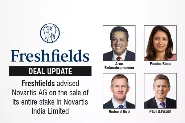 The global law firm, Freshfields acted as international legal counsel to Swiss-based healthcare company Novartis AG on the cross-border aspects of the proposed sale of its entire 70.68% shareholding in Novartis India Limited to WaveRise Investments Limited, ChrysCapital Fund X, and Two Infinity Partners, which form part of the ChrysCapital group.