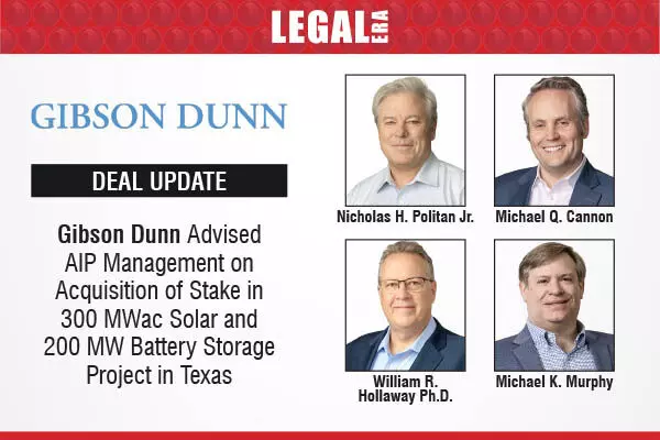 Gibson Dunn Advised AIP Management On Acquisition Of Stake In 300 MWac Solar And 200 MW Battery Storage Project In Texas