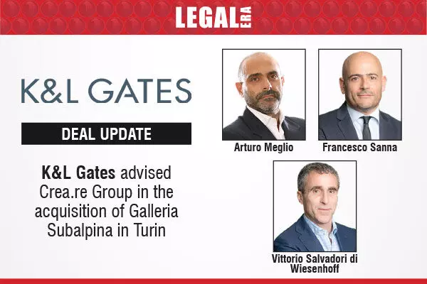 K&L Gates has advised a pool of investors led by Crea.re Group S.r.l. in its acquisition of the historic Galleria Subalpina in Turin from the Opal fund, managed by Kryalos sgr and underwritten by Blackstone.