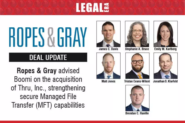 Ropes & Gray LLP advised Boomi™, a global leader in AI-driven automation, in connection with its definitive agreement to acquire Thru, Inc., a provider of enterprise-grade Managed File Transfer (MFT) solutions.