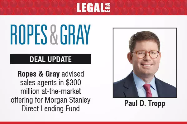 Ropes & Gray advised sales agents in $300 million at-the-market offering for Morgan Stanley Direct Lending Fund