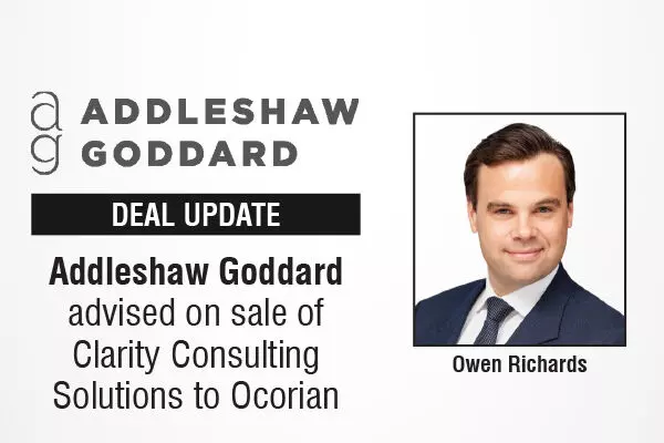 The major international law firm Addleshaw Goddard advised the existing shareholders on the sale of Clarity Consulting Solutions Ltd, a leading provider of regulatory and compliance services in Dubai and Abu Dhabi, to Ocorian, a private equity-backed global compliance and fund administration specialist.