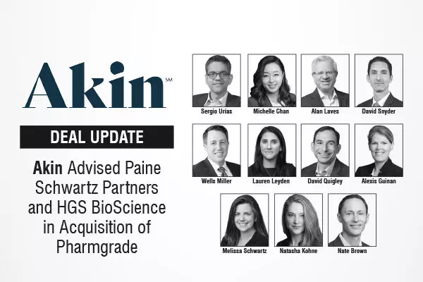 Akin Gump Strauss Hauer & Feld LLP Advised Paine Schwartz Partners and HGS BioScience in Acquisition of Pharmgrade