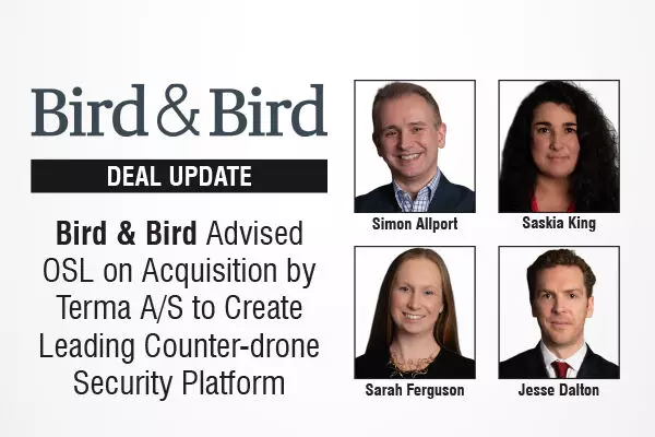 Simon Allport, Corporate Partner at Bird & Bird, commented: "We are delighted to have advised OSL and its shareholders on this strategically significant transaction with Terma. This deal exemplifies Bird & Bird's deep expertise in both the aviation and defence sectors, where we have a strong track record of advising on complex, high-value transactions involving cutting-edge technology. The combination of OSL's proven operational expertise in counter-drone technology with Terma's defence-grade capabilities creates a formidable platform to address the growing threats posed by unmanned aircraft systems. As aerial security becomes increasingly critical for both civilian and military applications, this acquisition demonstrates the convergence of our aviation and defence sector capabilities and positions the combined business as a leader in this rapidly evolving sector."