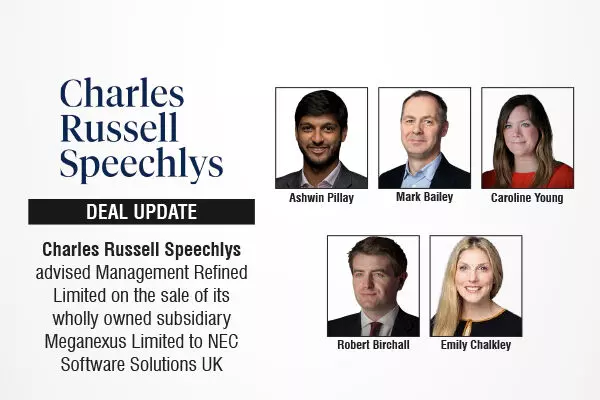 Charles Russell Speechlys has advised long standing client Management Refined Limited on the sale of Meganexus Limited to NEC Software Solutions UK (NECSWS), the developers of critical, user-centric software for the public sector.