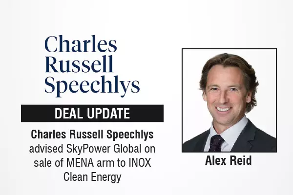 The global law firm, Charles Russell Speechlys, advised SkyPower Global on the sale of SkyPower Services MENA to Inox Clean Energy (Inox), part of the INOXGFL Group, one of India’s leading integrated renewable energy platforms. The transaction supports the launch of a fully integrated renewable energy platform aimed at deploying more than 10 gigawatts (GW) of solar-powered infrastructure across Africa.