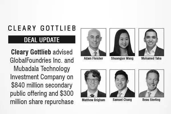 Cleary Gottlieb advised GlobalFoundries Inc. and Mubadala Technology Investment Company on $840 million secondary public offering and $300 million share repurchase