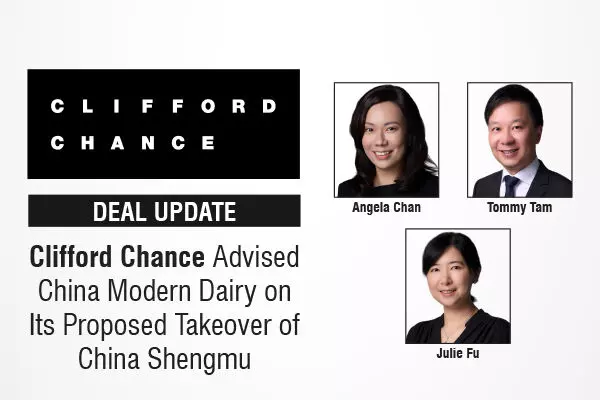 Global law firm Clifford Chance is advised one of China's largest dairy companies China Modern Dairy Holdings Ltd. (CMD) on its proposed mandatory conditional cash offer for the issued shares of China Shengmu Organic Milk Limited (CSM) for approximately HK$2 billion (US$257 million).