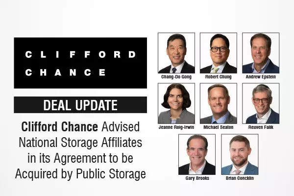Global law firm Clifford Chance has advised National Storage Affiliates (NYSE: NSA) in its agreement to be acquired by Public Storage (NYSE: PSA), in an all-stock transaction valued at an enterprise value of approximately US$10.5 billion.