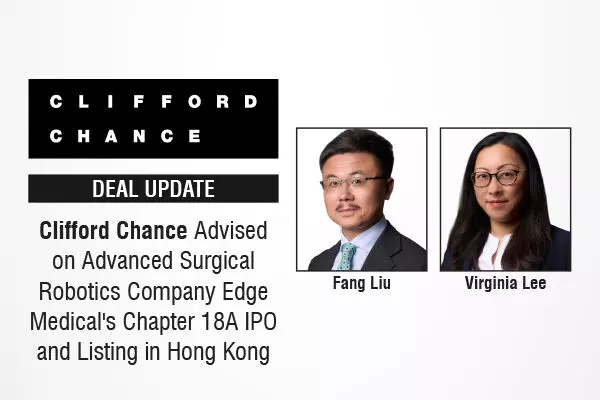 Global law firm Clifford Chance has advised the joint sponsors and underwriters including Morgan Stanley, GF Capital, GF Securities, CICC, CLSA and CMBC Securities on the initial public offering and listing of advanced surgical robotics company Shenzhen Edge Medical Co., Ltd. (Edge Medical) on the Main Board of the Hong Kong Stock Exchange, under the Exchange's Chapter 18A Listing Rules for Biotech Companies.