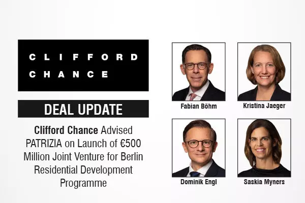 Global law firm Clifford Chance has advised global real asset investment manager PATRIZIA on the launch of a Berlin residential development programme through a new joint venture, targeting a total development volume of up to €500 million.