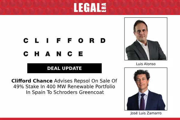 Clifford Chance has advised Repsol on the sale of a 49% stake in a 400 MW wind and solar portfolio located in Spain valued at EUR 580 million to Schroders Greencoat.