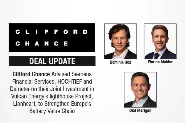 Clifford Chance Advised Siemens Financial Services, HOCHTIEF and Demeter on their Joint Investment in Vulcan Energy's lighthouse Project, Lionheart, to Strengthen Europe's Battery Value Chain