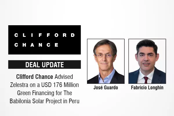 Clifford Chance has advised Zelestra on a USD 176 million green financing agreement, for the development of the Babilonia solar project, a 242 MW facility located in Peru. The financing was provided by Natixis CIB and BBVA Perú.