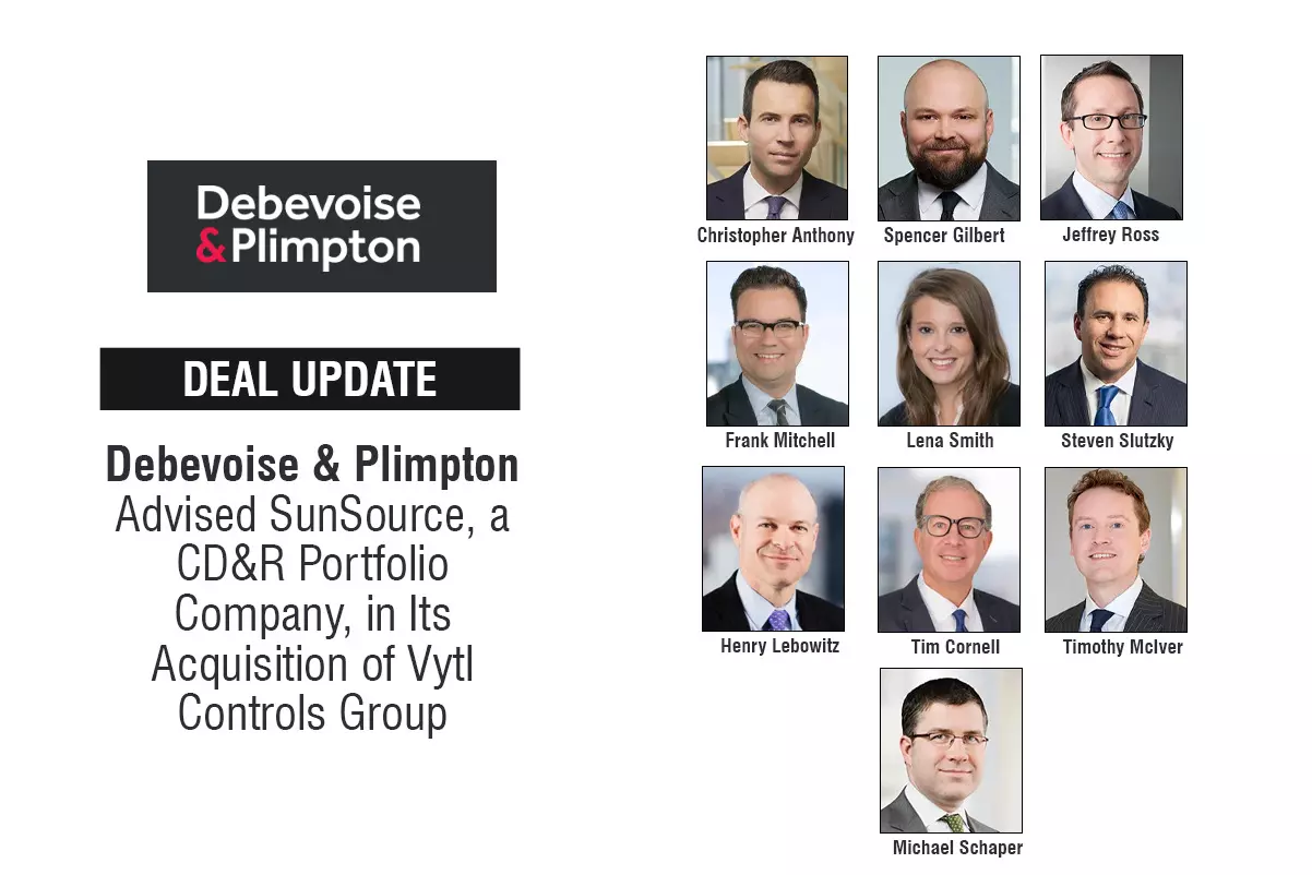 Debevoise & Plimpton LLP Advised Sunsource, A CD&R Portfolio Company, In Its Acquisition Of Vytl Controls Group